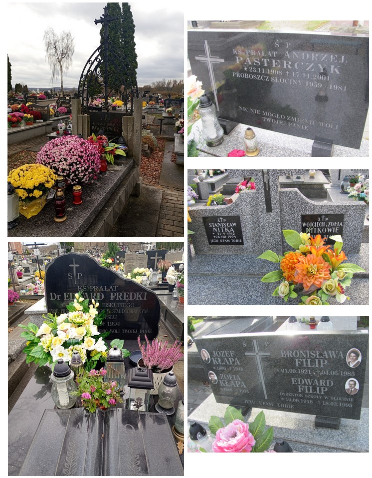 Cmentarz przy ul. Słocińskiej przez lata zapełnił się i jest miejscem spoczynku wielu pokoleń mieszkańców Słociny, ale również i innych miejscowości uprzednio należących do parafii Słocina, jak choćby Matysówki. W najstarszej części cmentarza, wiele miejsc pochówku wykorzystane było przynajmniej 3 krotnie, w części z 1917 r. – przynajmniej 2-krotnie. Brak jest zachowanej kompletnej dokumentacji, pozwalającej ustalić liczbę pochowanych tu zmarłych, gdyż zaginęły stare księgi pochówków, ale na pewno od początku XIX wieku pochowano tu tysiące osób. Cmentarz ten jest miejscem wiecznego spoczynku dla wielu znanych i zasłużonych dla miejscowości – jak już wspomniani patronowie niektórych osiedlowych ulic. Na cmentarzu pochowani są księża posługujący w naszej parafii – zasłużeni proboszczowie jak ks. Jan Kobak czy też ks. Andrzej Pasterczyk oraz kapłani z niej pochodzący – ks. Ignacy Pawlikiewicz, ks. Edward Prędki. Znajdują się tu też groby sióstr zakonnych, zmarłych w czasie swej posługi w Słocinie (groby znajdują się za kaplicą). Na cmentarzu znajdziemy groby kierowników i nauczycieli naszej szkoły m.in. Cypriana Przybyło, Heleny Trałka, Stanisława Ferenc czy Edwarda Filip. Spoczywają tu wójtowie, lekarze, osoby związane z OSP w Słocinie, Stanisław Nitka -znany krypiarz, ale też wielu innych ludzi, którzy ze Słociną byli związani, tu zostali pochowani i na tym, naszym cmentarzu czekają na zmartwychwstanie.