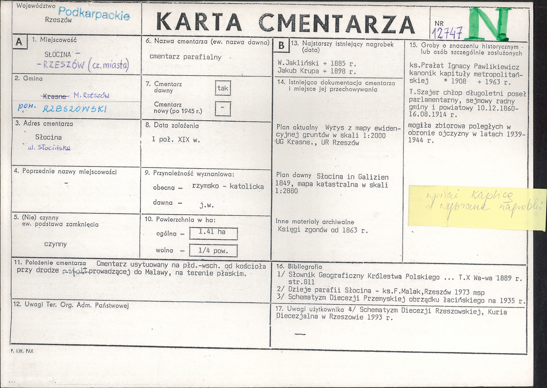 - Księgi zgonów Słocina – https://www.szukajwarchiwach.gov.pl/