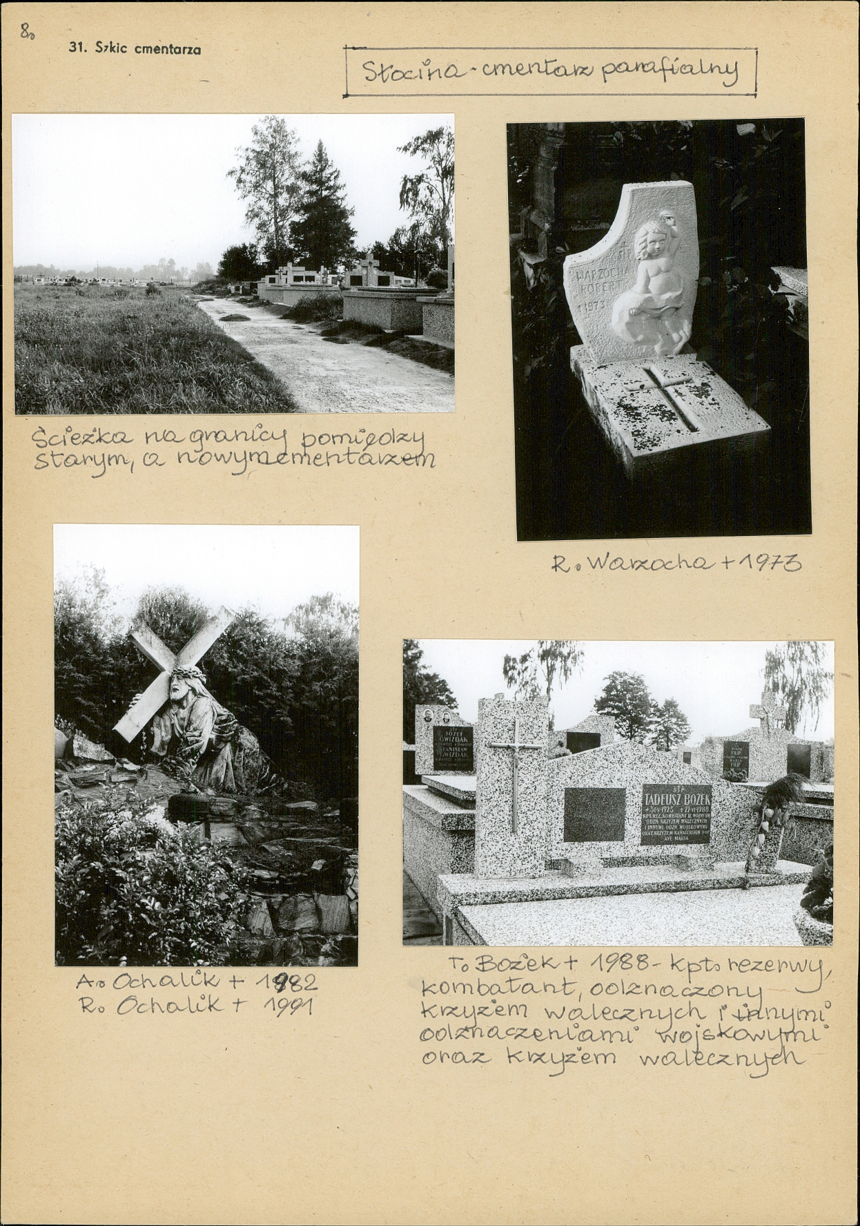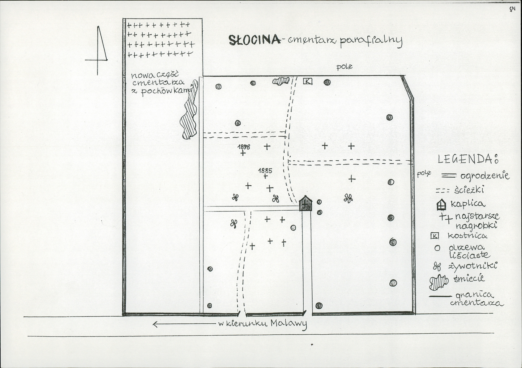 W tej części znajdują się najstarsze zachowane krzyże i pomniki. Są tu skupiska rodzinne pochówków m.in. Staniów, Gliwów, Krupów (zwykle wówczas członków rodzin chowano w grobach zlokalizowanych w pobliżu siebie). W starej części cmentarza został pochowany też ks. Kobak oraz niektórzy mieszkańcy zasłużeni dla Słociny, od których nazwisk pochodzą nazwy ulic na naszym osiedlu np. Tomasz i Helena Szajer, Stefania Michlewska, Józefa Jaklińska czy ks. Andrzej Pasterczyk.